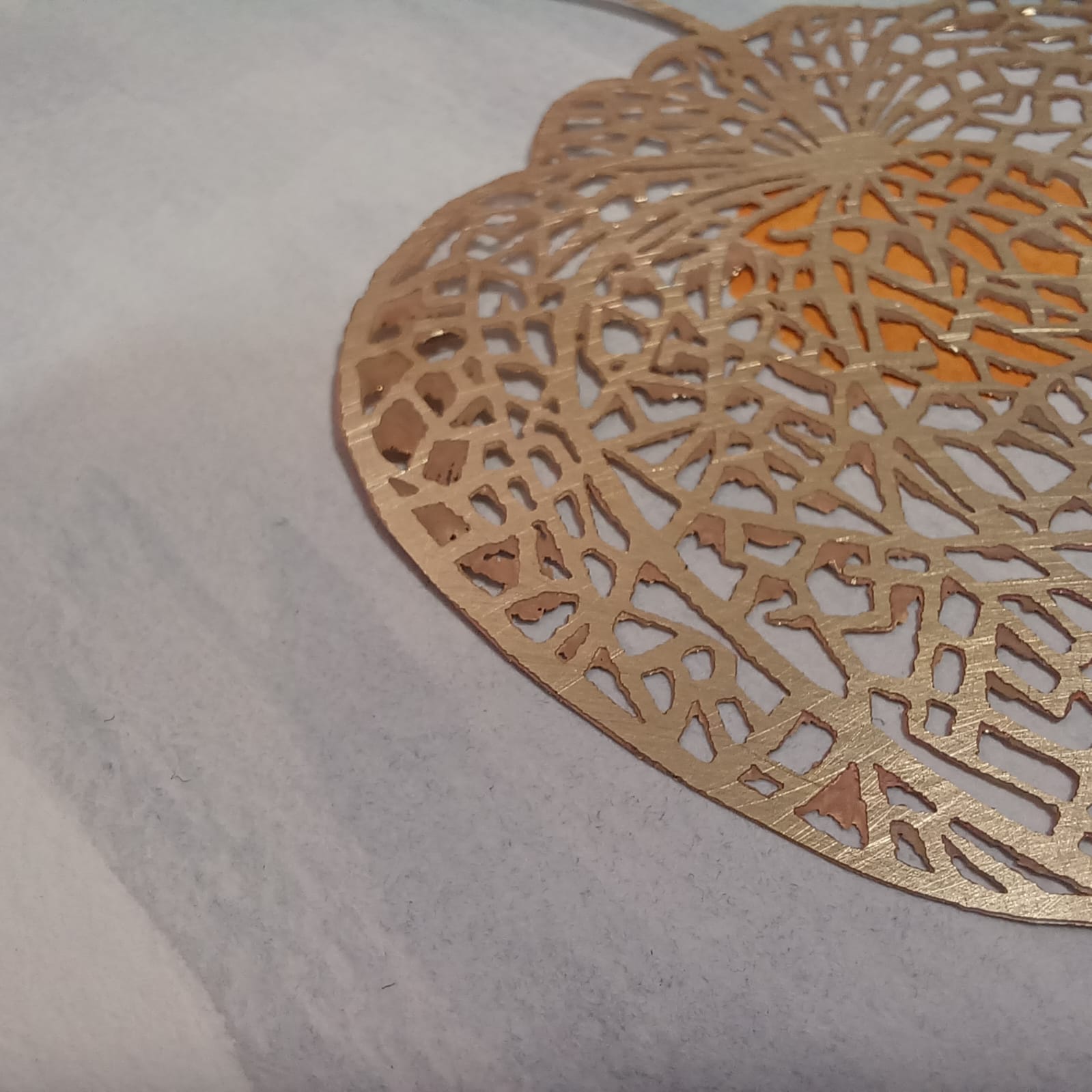 Lamina de latón grabado, de 0.1mm aplicada sobre papel 100% algodón de 200grs,